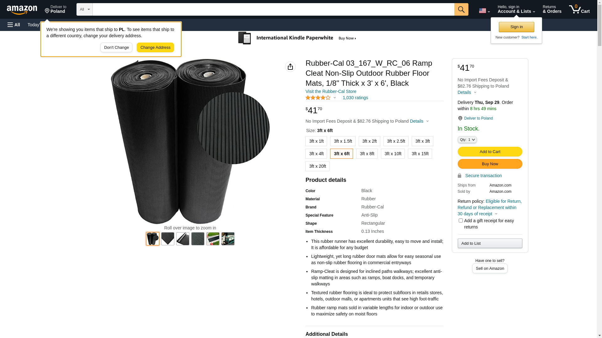 Rubber-Cal "Ramp-Cleat" Non-Slip Outdoor Rubber Mats - 1/8 in x 3 ft x 6 ft Floor Mat