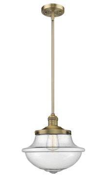 Innovations Lighting 201S-BB-G544 Oxford - 1 Light Stem Hung Mini Pendant in Traditional Style-11.5 Inches Tall and 11.75 Inches Wide, Finish Color: Brushed Brass, Glass Color: Seedy