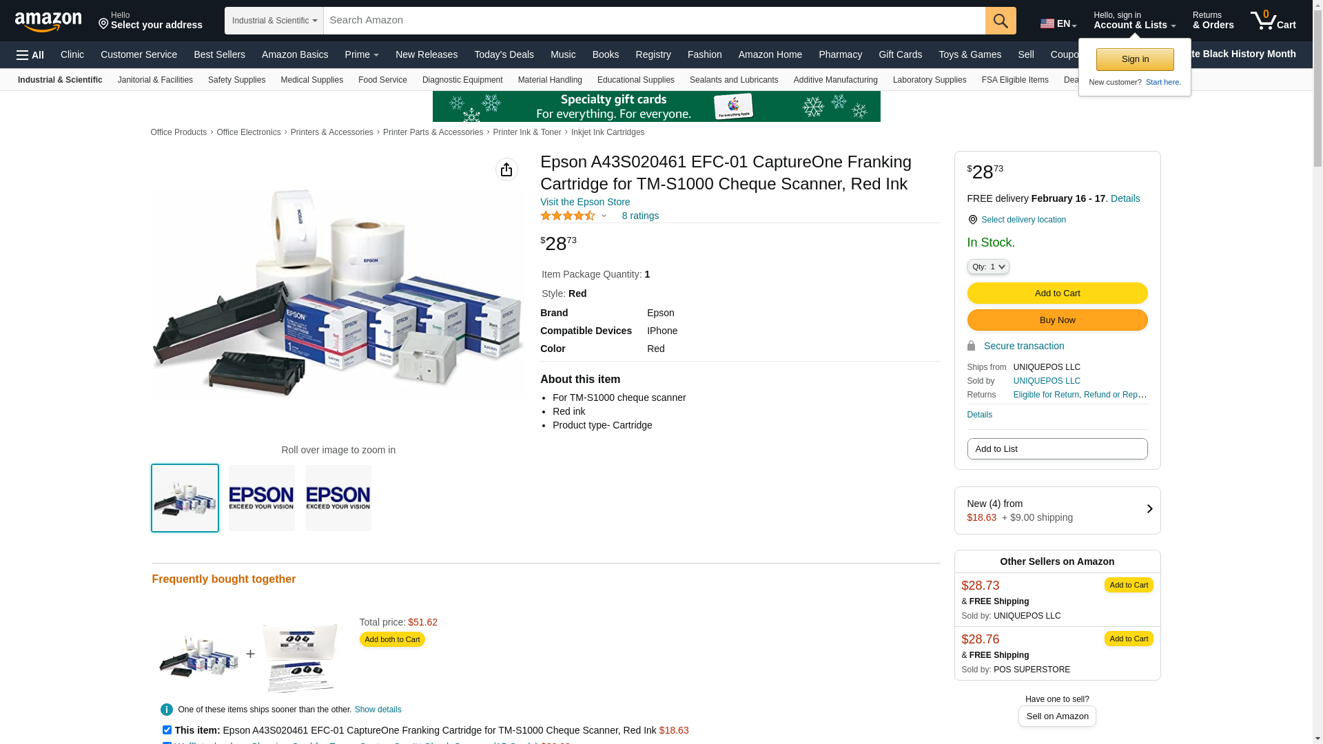 Epson A43S020461 EFC-01 CaptureOne Franking Cartridge for TM-S1000 Cheque Scanner, Red Ink