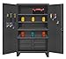 - <b>Number of Doors</b>: 2 <b>Overall Width</b>: 48" <b>Cabinet Style</b>: Combination Drawer <b>Material</b>: Steel <b>Cabinet Door Type</b>: Standard <b>Overall Depth</b>: 24" <b>Locking Cabinet</b>: Yes <b>Assembled/Unassembled</b>: Assembled <b>Cabinet Strength Rating</b>: Heavy Duty <b>Height of Cabinet</b>: 78" <b>Shelf Capacity</b>: 400 lb. <b>Cabinet Locking Mechanism</b>: Padlock Hasp <b>No. of Drawers</b>: 6 <b>Material - Cabinets</b>: Steel <b>Storage</b>: Pegboard