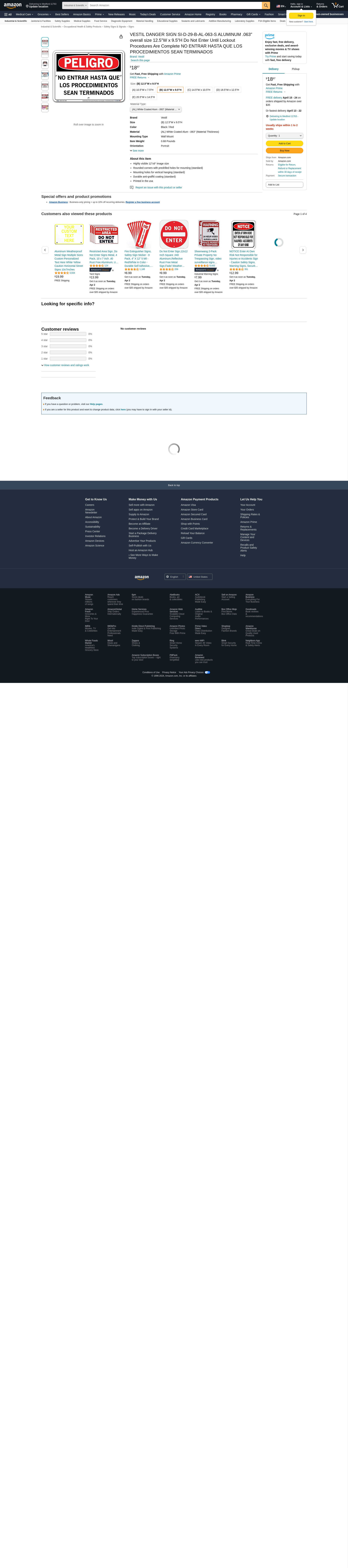 Vestil SI-D-29-B-AL-063-S Spanish Sign-Danger-29 12.5" X 9.5" Aluminum .063" Thickness | MROSupply.com