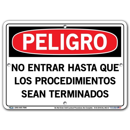 VESTIL DANGER SIGN SI-D-29-B-AL-063-S ALUMINUM .063" overall size 12.5"W x 9.5"H Do Not Enter Until Lockout Procedures Are Complete NO ENTRAR HASTA QUE LOS PROCEDIMIENTOS SEAN TERMINADOS
