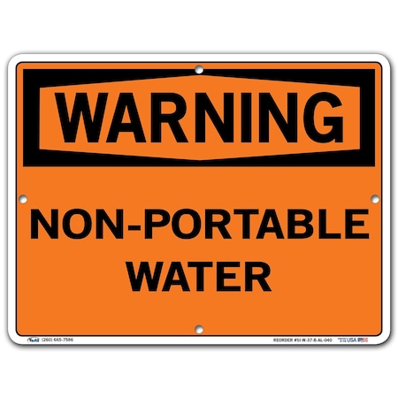 Vestil SI-W-37-B-AL-040 NON-POTABLE WATER Warning Sign, Aluminum, 0.040" Overall Size, 12.5" W x 9.5" H