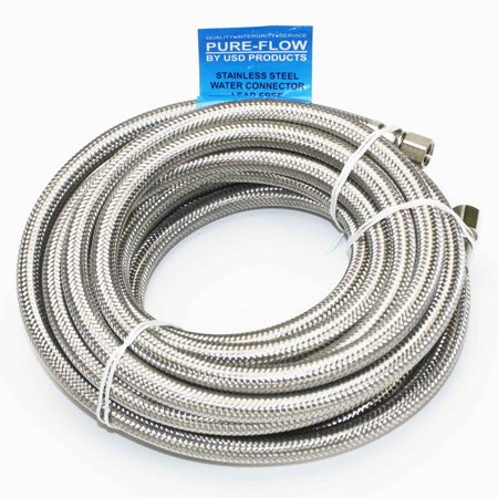 USD Products part number 04-90220SS-LFBraided Stainless Steel Water Supply LineFor Suppling Water to a refrigerator ice maker water valve20 Foot (240 inches) Long1/4" x 1/4" Female Compression FittingsBraided Stainless Steel