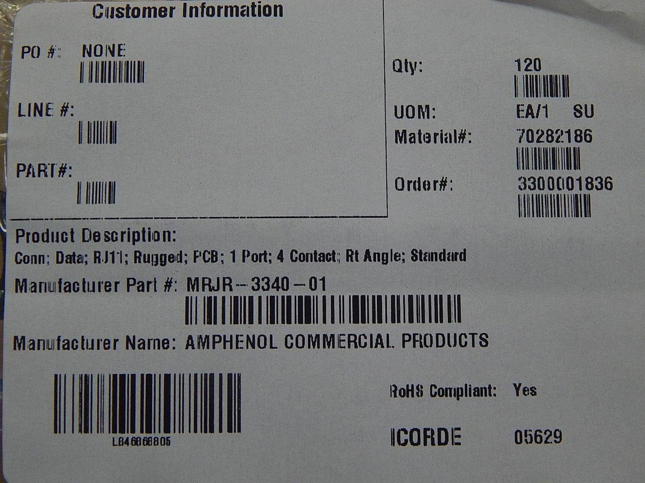 | Waldom | AMPHENOL ICC (COMMERCIAL PRODUCTS) MRJR334001 | 1 | 1 | ||