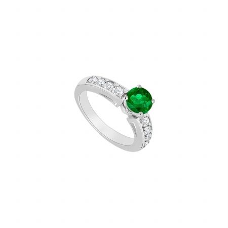 Fine Jewelry Vault UBJS227AW14DERS5 14K White Gold Emerald & Diamond Engagement Ring, 1.00 CT - Size 5