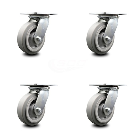 Heavy Duty Large Top Plate Thermo Rubber Flat Tread Swivel Caster w/Main. Free Bearings Set of 4 w/6" x 2" Gray Wheels - Includes 4 Swivel - 2000 lbs Total Capacity - Service Caster Brand