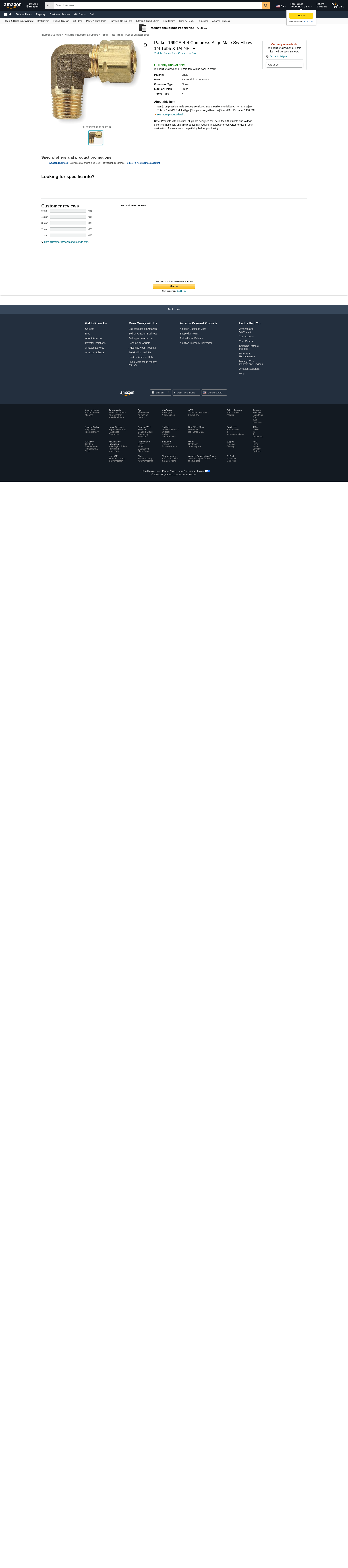- Item|Compression Male 90 Degree Elbow#Brand|Parker#Model|169CA-4-4#Size|1/4 Tube X 1/4 NPTF Male#Type|Compress-Align#Material|Brass#Max Pressure|1400 PSI