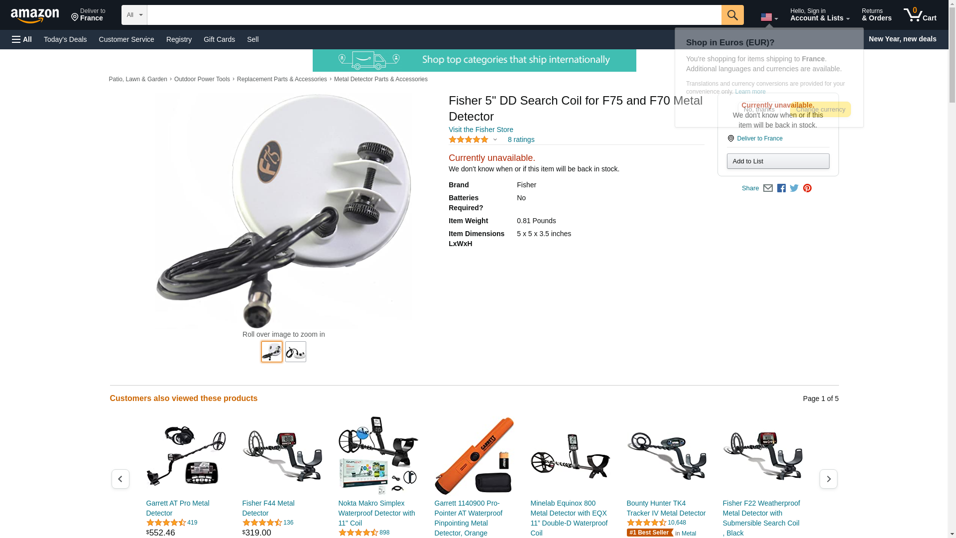 Fisher's smaller 5 inch coil is great for finding coins, smaller jewelry, relics and even very small gold nuggets. The small 5 inch size is perfect for detecting in high density trash areas, highly mineralized soil and hard to reach tight spots. All Fisher search coils purchased separately carry a 90 day factory warranty and are fully submersible. Works with the Fisher F75 and F70 Series of metal detectors.
