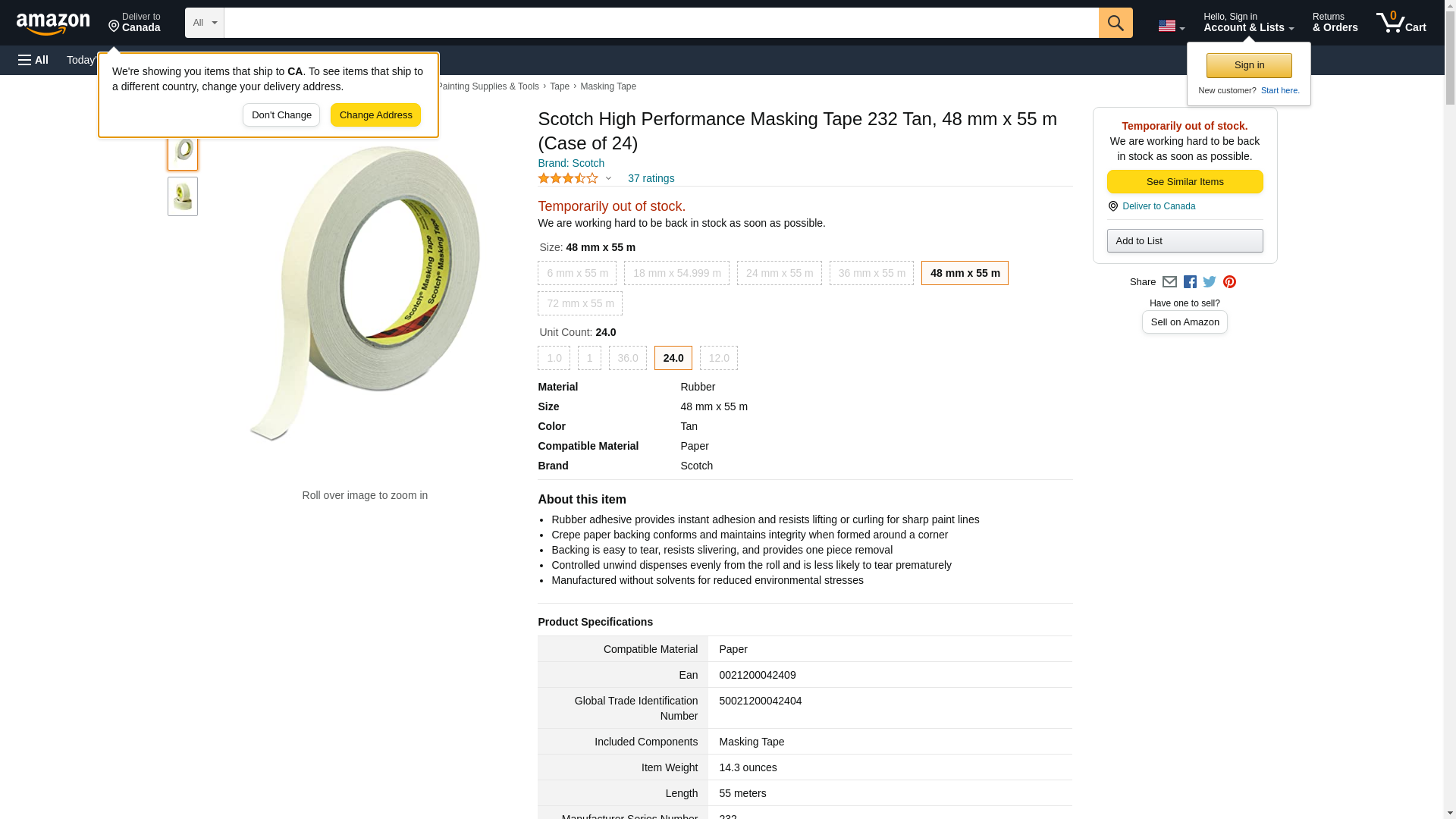 Scotch High Performance Masking Tape 232 Tan, 48 mm x 55 m (Case of 24). Rubber adhesive provides instant adhesion an...