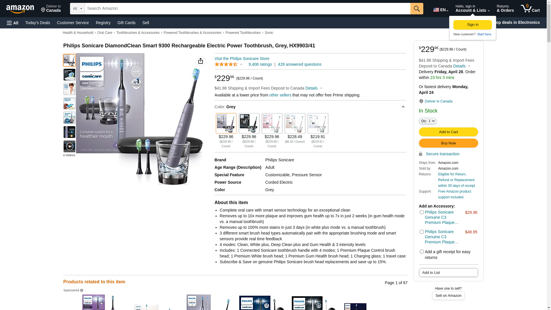 Philips Sonicare DiamondClean Smart 9300 Rechargeable Toothbrush Gray HX9903/41 - Best Buy