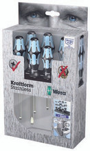 Wera 05032063001 Kraftform Stainless 3334/3350/3355/6 Stainless Steel Slotted/Phillips/Pozidriv Screwdriver Set and Rack, 6-Piece