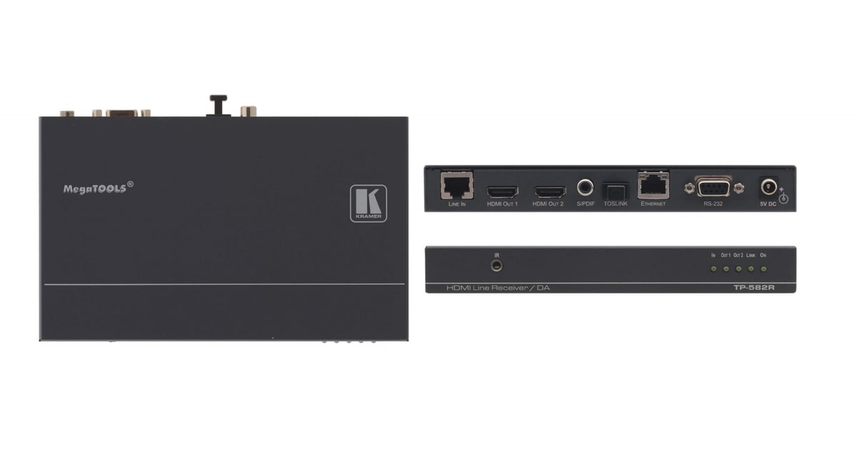 Kramer AV TP-582R 1:2 HDMI W/ Bi-directional RS-232, HDBaseT Receiver - Conference Room AV