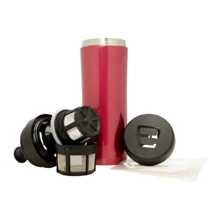 - Makes 10 oz coffee and holds 15 oz as a travel mug; Red; BPA, BPS, and phthalate free