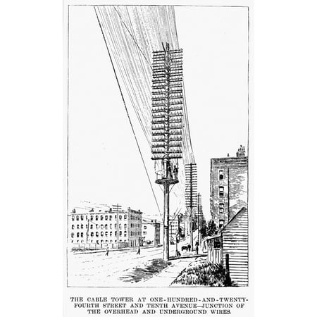 Telephone Lines 1891 NThe Cable Tower At 124 Street And 10Th Avenue - Junction Of The Overhead And Underground Lines The Telephone In New York City Line Engraving From An American Newspaper Of 1891 Po