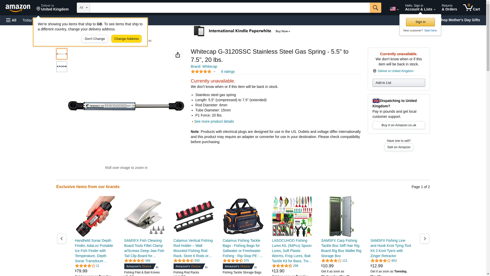 Whitecap 7 1/2 Gas Spring 20Lb Stainless Steel