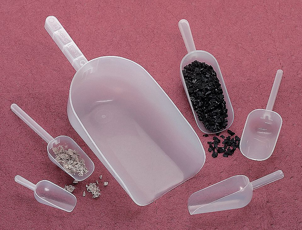<p><strong>Polypropylene 1100cc Scoop</strong></p><p>Assign a scoop to each different material to avoid cross contamination. Lengthened handle on 60 and 125 cc scoops better distances the sample from the hand. Scoops remain upright when filled, simplifying sample weighing. Autoclavable at 121 C (250 F).</p><p><strong>Features</strong></p><ul><li>Smooth, translucent scoops ease sample collection and dispensing</li><li>Rugged one piece polypropylene construction is chemical and corrosion resistant</li><li>Bowl Size: 203 x 121 x 76 (8 x 4-3/4 x 3")</li><li>Handle: 102 (4")</li><li>Capacity: 1100cc</li></ul>