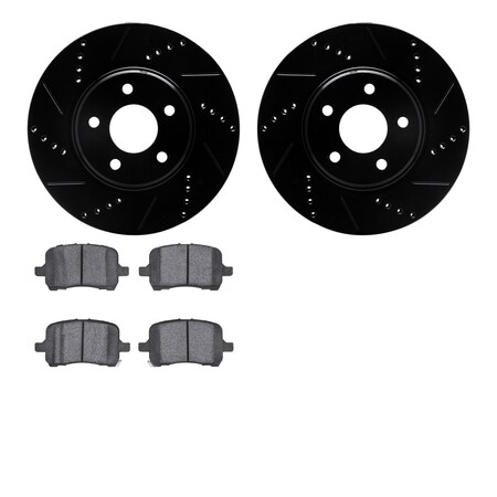 8602-53000, Rotors-Drilled and Slotted-Black with 5000 Euro Ceramic Brake Pads, Zinc Coated