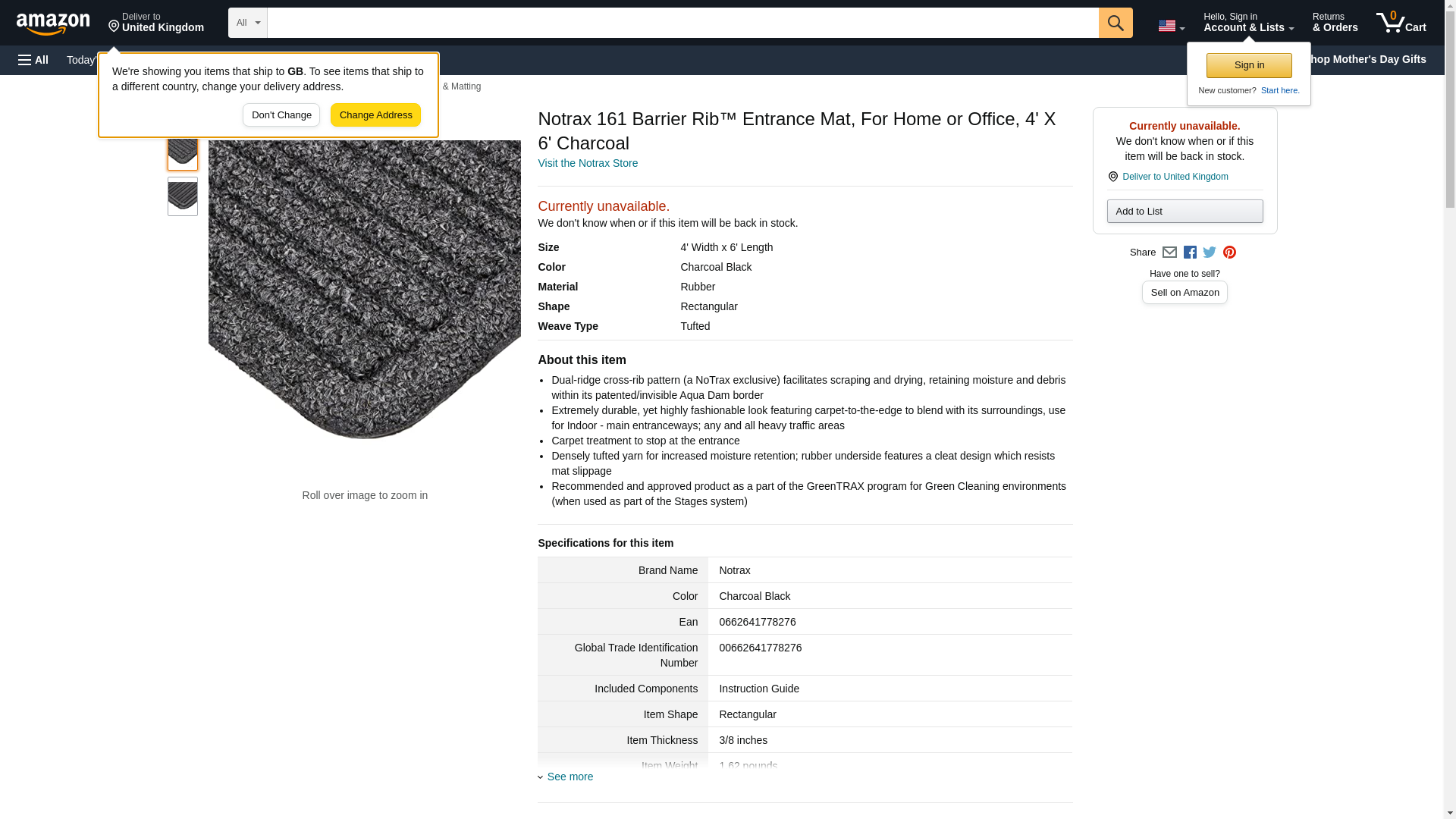 Notrax 161 Barrier Rib Entrance Mat, for Home or Office, 4' X 6', Charcoal Black