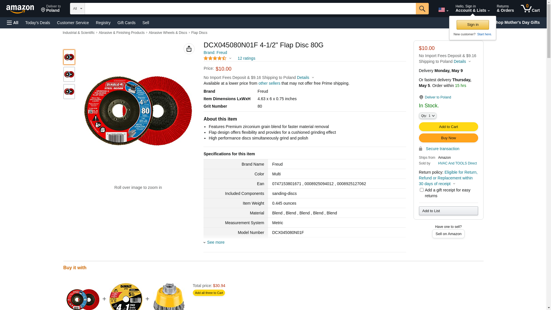 | Feature | 4-1/2" Type 29 80 Grit Diablo Flap Disc |