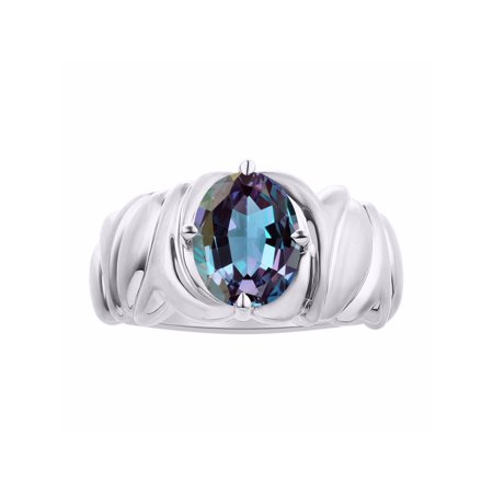 Solitaire Simulated Alexandrite Ring Set In Sterling Silver - Color Stone Birthstone Ring
