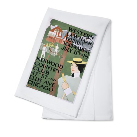 Western Lawn Tennis Tournament Vintage Poster (artist: Penfield) USA c. 1896 (100% Cotton Kitchen Towel)