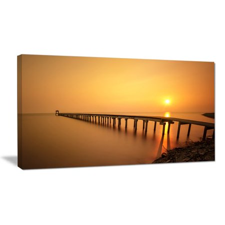 ESIG7575 <br /> <b>Features</b> <br /> <ul> <li>Canvas giclee print is gallery-wrapped (the design continues on the sides), giving it a real art gallery feel</li> <li>Premium quality cotton canvas</li> <li>Arrives ready to hang on the wall</li> <li>Easy to hang</li> <li>Subject: Sea pier and bridge </li> <li>Subject: Landscape & Nature</li> <li>Style (Old): Photography</li> <li>Color: Orange</li> <li>Region: North America</li> <li>Primary Art Material: Canvas</li> </ul> <ul> <li>Size (12" H x 20" W x 1" D): Small 18"-24"</li> </ul> <ul> <li>Size (16" H x 32" W x 1" D): Medium 25"-32"</li> </ul> <ul> <li>Size (20" H x 40" W x 1" D): Large 33"-40"</li> </ul> <ul> <li>Size (30" H x 40" W x 1" D): Large 33"-40"</li> </ul> <br /> <b>Dimensions</b> <br /> <ul> <li>1" Wood sub frame</li> <li>Overall Depth - Front to Back: 1"</li> </ul> <br />Size 12" H x 20" W x 1" D <br /> <ul> <li>Overall Height - Top to Bottom: 12"</li> <li>Overall Width - Side to Side: 20"</li> <li>Overall Product Weight: 2 lbs</li> </ul> <br />Size 16" H x 32" W x 1" D <br /> <ul> <li>Overall Height - Top to Bottom: 16"</li> <li>Overall Width - Side to Side: 32"</li> <li>Overall Product Weight: 3 lbs</li> </ul> <br />Size 20" H x 40" W x 1" D <br /> <ul> <li>Overall Height - Top to Bottom: 20"</li> <li>Overall Width - Side to Side: 40"</li> <li>Overall Product Weight: 4 lbs</li> </ul> <br />Size 30" H x 40" W x 1" D <br /> <ul> <li>Overall Height - Top to Bottom: 30"</li> <li>Overall Width - Side to Side: 40"</li> <li>Overall Product Weight: 4 lbs</li> </ul>