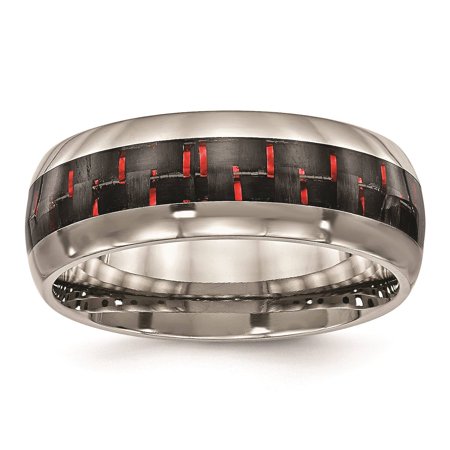 Chisel Titanium w/Black & Red Carbon Fiber Inlay Polished 8mm Wedding Ring Band Size 7.5