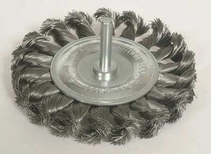 Weiler Standard Twist Knot Wire Wheel, 3 in D x 3/8 in W, .014 in Steel Wire, 1/4 Stem