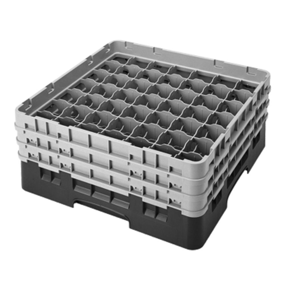 Cambro Camrack glass racks provide the perfect solution to wash, store and safely transport your stemware and tumblers. Their open inside compartments ensure thorough circulation of water and cleaning solutions and promotes quick and thorough drying. Closed external walls keep fingers safe, contaminants out and reduces the risk of injury and breakage. The Camrack glass rackfeatures easy-to-grip, rounded handles on all four sides for comfortable handling. A smooth top rim ensures quick, stable stacking plus the rack can inter-stack with other competitive racks. This 49-compartment, soft grayglass rack is made of durable, long-lasting polypropylene that can withstand chemicals and high temperatures up to 200°F (93.3°C). Fits through any commercial dishwasher. Add a Camdolly and Cover for completely-enclosed, sanitary storage between use. - Camrack Full-Size Glass Rack- 2 Extenders, 49 compartments- Open inside compartments, closed exterior walls - Easy grip, rounded handles on all sides- Durable, polypropylene construction- Soft gray basewith soft gray extenders- Fits any commercial dishwasher- Stackable- NSFListed- Compartment Size: 2-7/16in Dia x 5-1/4in H- Dimensions: 19-3/4in W x 19-3/4in L x 7-1/4in H- Case size: 4
