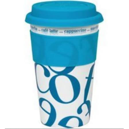 Konitz Script Collage To Stay/To Go Mugs, Blue, Set of 2