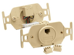 Leviton 41054-IDD Telephone Type 105 Single Insert Flush Wall Jack - Ivory (Pkg of 10)