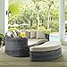 Summon Collection EEI-1993-GRY-BEI 71" Outdoor Patio Sunbrella Daybed with Adjustable Foot Glide, Ottoman, Two-Tone Synthetic Rattan Weave, UV and Water Resistant in Antique Canvas and Beige