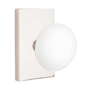 Porcelain Door Hardware Collection - Half Dummy Ice White Knob With Modern Rectangular Rosette in Polished Nickel by Emtek - 5052IW.HALF.US14 | MyKnobs