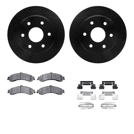 8512-48044, Rotors-Drilled and Slotted-Black w/ 5000 Advanced Brake Pads incl. Hardware, Zinc Coated