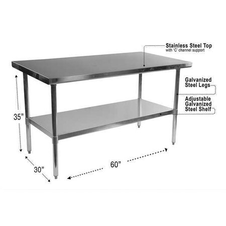 | Feature | 18 gauge stainless steel top with galvanized base and shelf. |