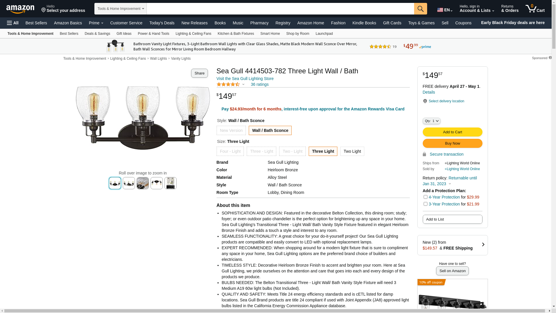 - SOPHISTICATION AND DESIGN: Featured in the decorative Belton Collection, this dining room; study; foyer; or even outdoor patio chandelier is the perfect option for brightening up any space in your home. Sea Gull Lighting's Transitional Three - Light Wall/ Bath Vanity Style Fixture featured in elegant Heirloom Bronze Finish and adds a touch a style and interest to any room.