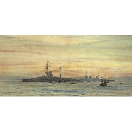 William Wyllie Stretched Canvas Art - More Sea-fights of the Great War 1919 Revenge & Lion - Medium 18 x 24 inch Wall Art Decor Size.