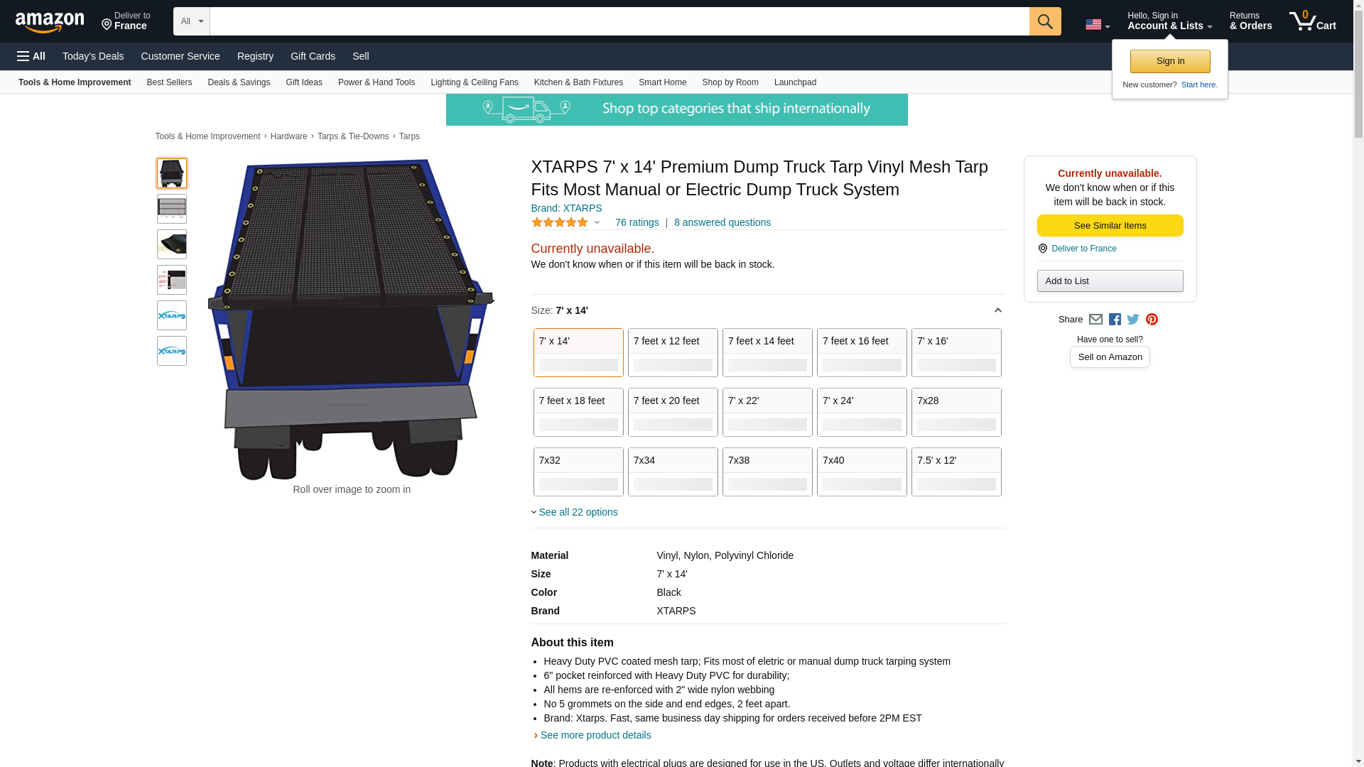 7' x 14' Xtarps Dump Truck Tarp - Heavy Duty, Industrial Grade Size: 7 ft. x 14 ft. Black Color Heavy Duty PVC coated mesh tarp; 6" pocket reinforced with 23oz PVC for durability; 2 extra reinforced webbing along open of tarp area #5 grommets around the hem spacing every 2 feet; All hems are re-enforced with 2" wide nylon webbing Strong & Durable Xtarps Products Xtarps Dump Truck Tarps | Truck Tarps | Drop Tarps | are made from truly heavy duty, industrial grade material. Xtarps series truck tarps are designed for tough trucking business use. Our dump truck tarps fit most of electric or manual tarp systems.