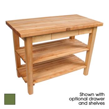 Put extra workspace in your kitchen with the Classic Country Work Table by John Boos. These kitchen islands have a solid edge-grain Northern rock hard Maple top that's 1-3/4" thick with a Cream finish.
