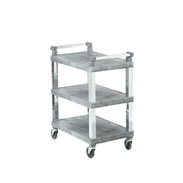 97102 Utility Cart 300 pound capacity Plastic (knock-down) 3 molded plastic shelves 29 12x18 gray finish chrome plated uprights and handles 4 swivel casters 30 12Lx18 12Wx36H 23 12 between shelves US