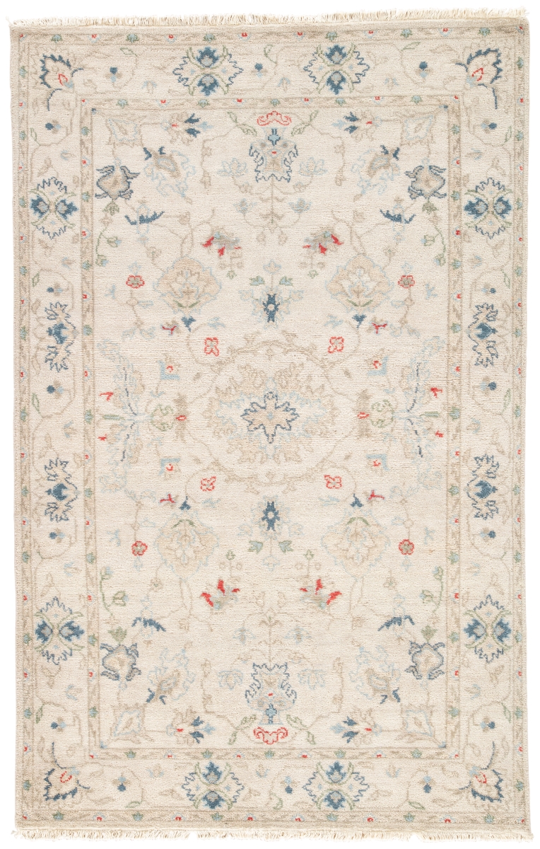 5 x 8 ft. Jaipur Revival Hacci Hand-Knotted Floral Cream & Blue Area Rug