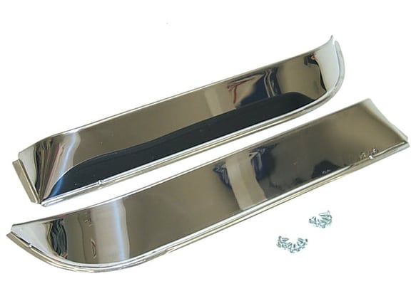 Fits 1955-1959 Chevrolet Truck - GMC Truck 1955-1959;<br><br>This stainless steel visor came as a factory accessory that could be added to any truck when it was ordered. Mounts on the left and right side to shield you and your passengers from sunlight and allow the side windows to be rolled down an inch or so for ventilation when it is raining. Sold as pairs with attaching screws. Requires small holes be drilled in door for attachment.;