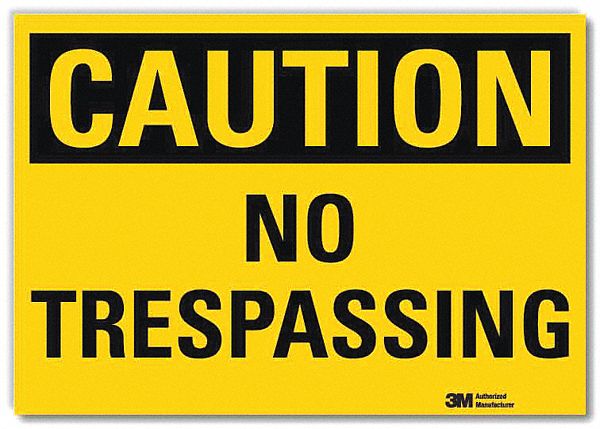 Safety Sign, Vertical Rectangle, Number of Printed Sides 1, English, Sign Format Traditional OSHA, Sign Legend No Trespassing, Sign Legend Background Color Yellow, Sign Legend Style Text
