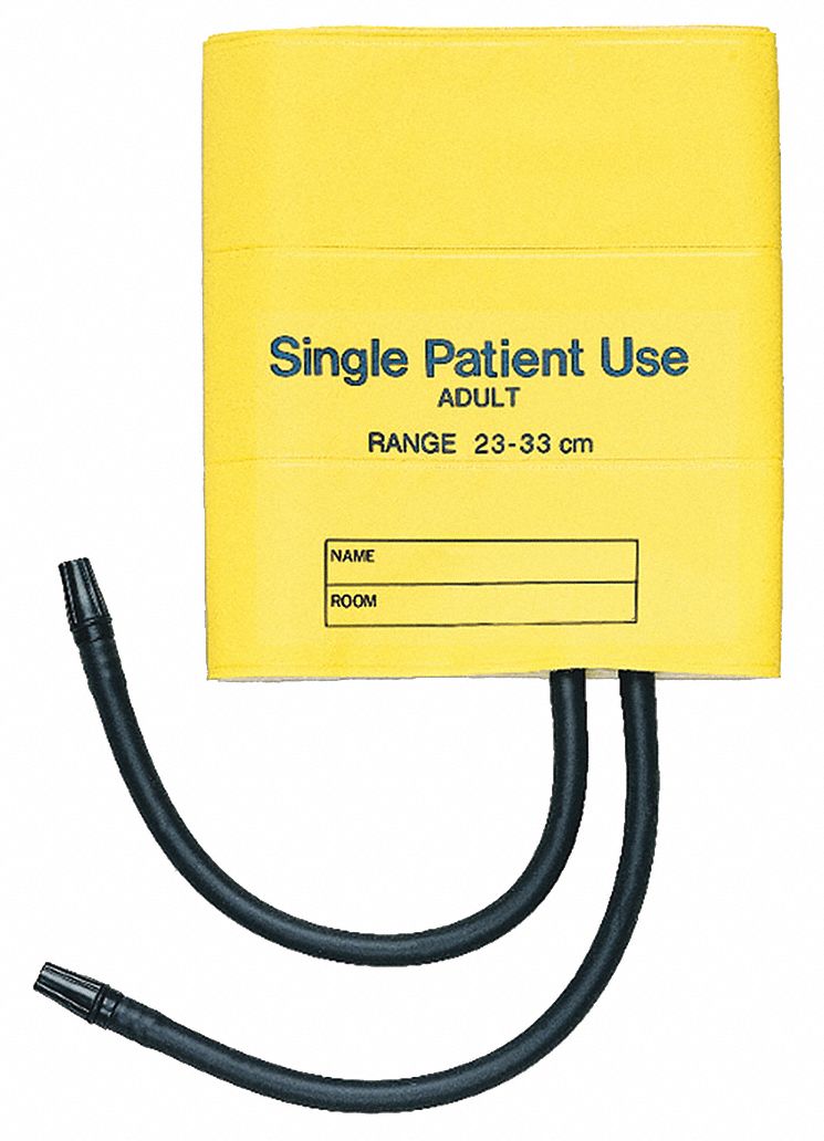 MABIS Single-Patient Use Disposable Blood Pressure Cuffs with Universal Connectors, Two Tubes, 22 to 33 Centimeters, Yellow, 5 per Box