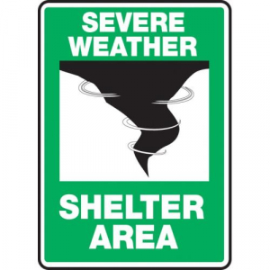 Severe Weather Safety Sign: Severe Weather - Shelter Area- Emergency Shelter Signs English 14" x 10" Dura-Plastic 1/Each - MFEX524XT - Jendco Safety Supply