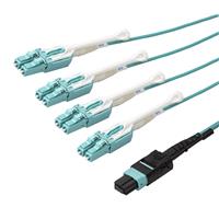 - OM3 FIBER CABLE: MTP(F)/PC to 4x LC/PC Duplex Breakout Multimode Fiber Cable features a single 40 Gbps connection to four LC duplex connectors; Ideal for high density connections between servers, switches, QSFP+ and SFP+ transceivers
