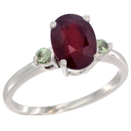 10K White Gold Enhanced Ruby Ring Oval 9x7 mm Green Sapphire Accent, sizes 5 to 10