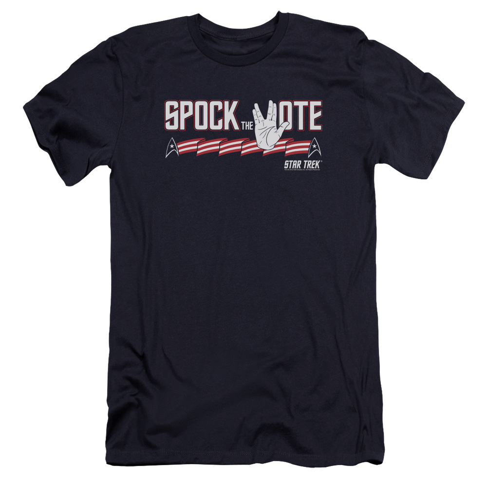 Trevco CBS1094-PSF-4 Star Trek & Spock the Vote Adult Premium Canvas Slim Fit 30-1 HBO Short Sleeve T-Shirt, Navy -