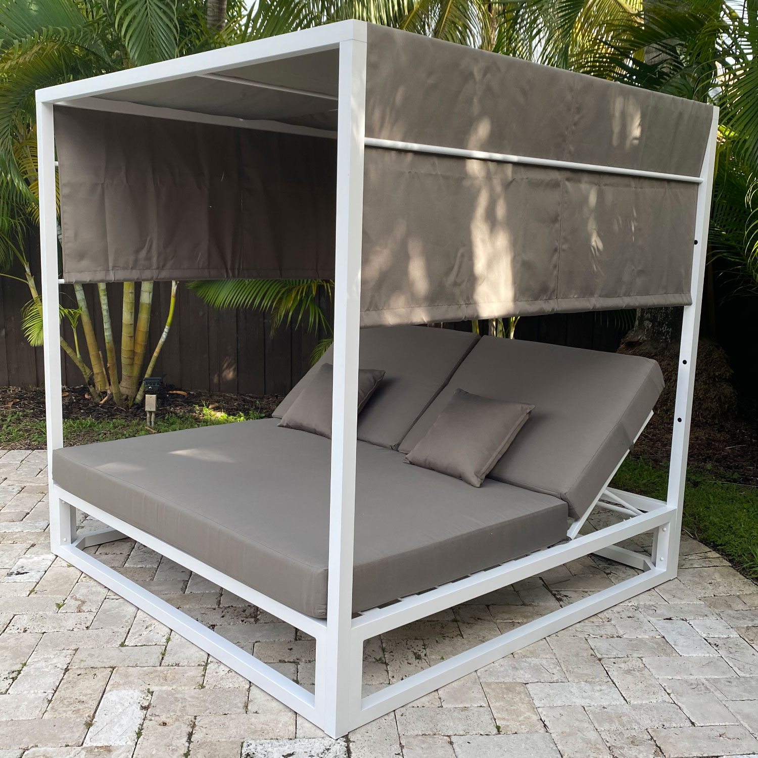 Whiteline GAZ1681-WHT Ava Outdoor Large Lounge Chair w/ Canopy in White Aluminum & Taupe Fabric